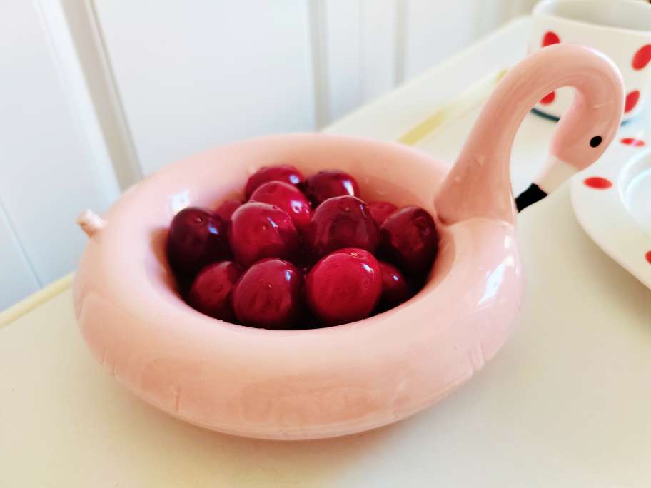 买了好久的漂亮盘子一直没有用,正好用来装老公买的樱桃,看起来也是赏心悦目的。